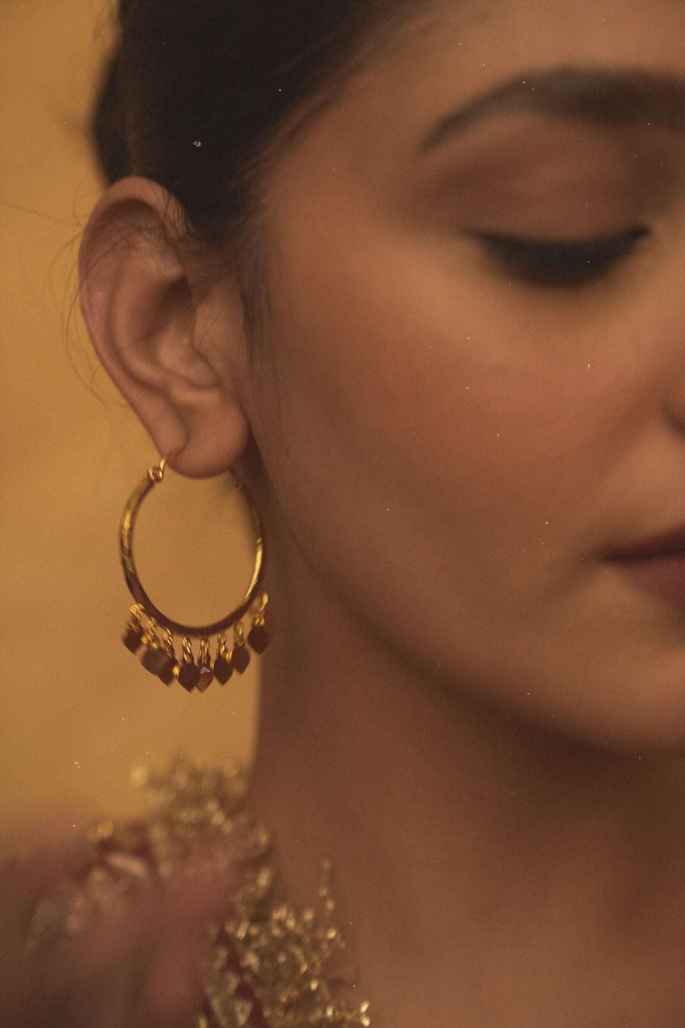 For the friend who loves a little heritage with her contemporary flair. These gold-finished Waaliyaan hoops feature garnet-like drops that swing and shimmer, boho, bold, and unmistakably Indian. They’re ideal for someone difficult to shop for but always appreciates jewellery gifts that are equal parts fun and classic.