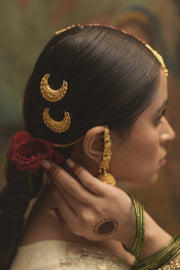 For someone who treasures the beauty of tradition in subtle forms, these crescent-shaped pins are perfect. Crafted in 92.5 silver with a 24k gold coat, their floral engravings and celestial shape make them ideal for wedding mornings, pre-festive rituals, or simply to crown a beautiful braid with a whisper of heritage.