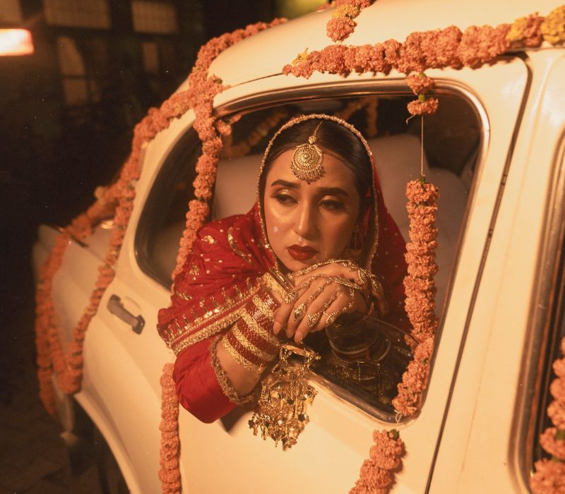 Pure Shell Pearl. This Chooda has 22 carat gold work on the front and back of the red bangles & middle Bangle is 92.5 Silver Gold Coated.