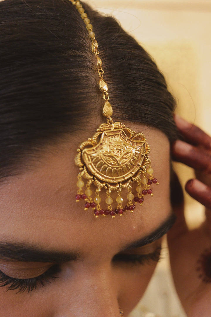 Book Video ConsultationThis piece is handcrafted in 92.5 silver and coated with 24 karat gold. If you wish to get it customized in gold, kindly drop us a message on whatsapp for a quotation.