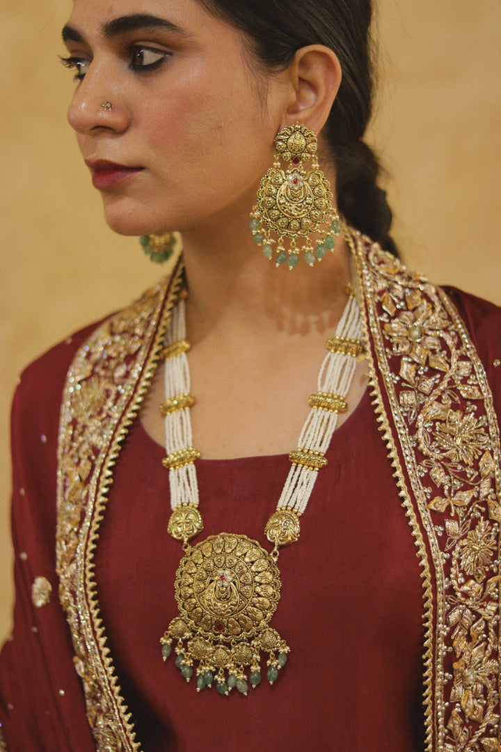 This piece is handcrafted in 92.5 silver and coated with 24 karat gold. If you wish to get it customized in gold, kindly drop us a message on whatsapp for a quotation.Any precious stones, if used, are lab tested and of...