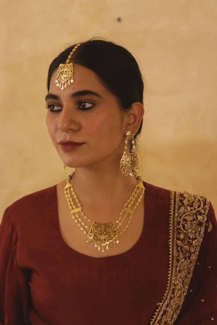 Book Video ConsultationThis piece is handcrafted in 92.5 silver and coated with 24 karat gold. If you wish to get it customized in gold, kindly drop us a message on whatsapp for a quotation.