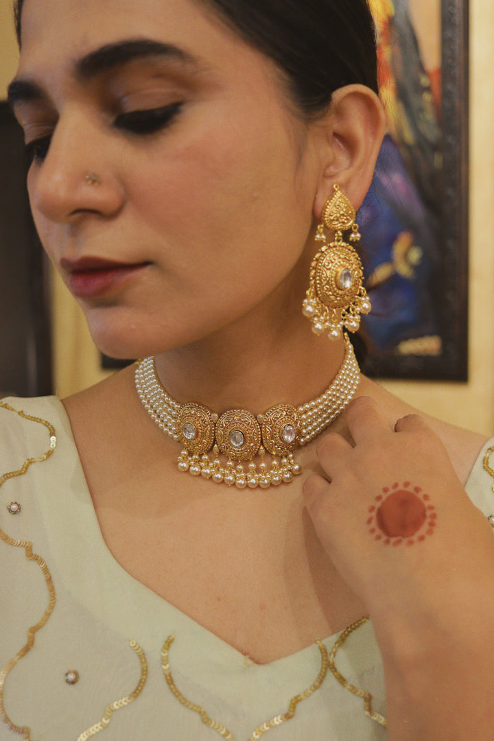 Book Video ConsultationThis piece is handcrafted in 92.5 silver and coated with 24 karat gold. If you wish to get it customized in gold, kindly drop us a message on whatsapp for a quotation.