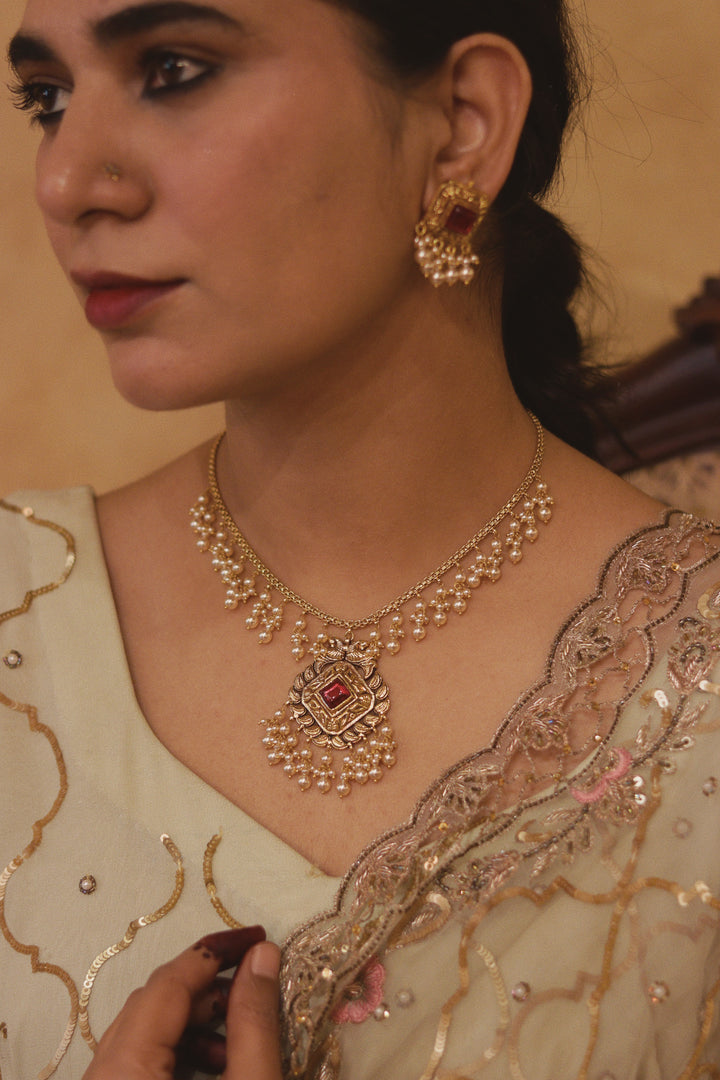 Book Video ConsultationThis piece is handcrafted in 92.5 silver and coated with 24 karat gold. If you wish to get it customized in gold, kindly drop us a message on whatsapp for a quotation.