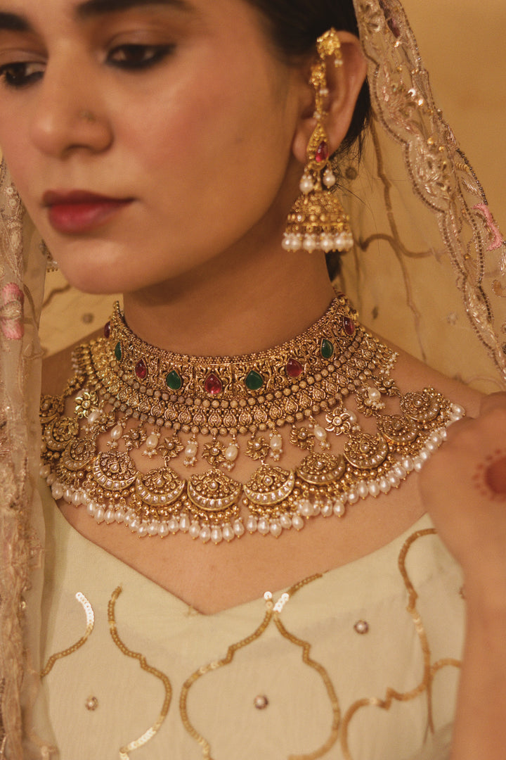 Book Video ConsultationThis piece is handcrafted in 92.5 silver and coated with 24 karat gold. If you wish to get it customized in gold, kindly drop us a message on whatsapp for a quotation.