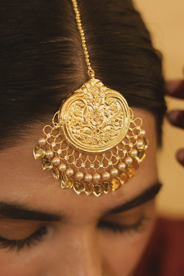 Book Video ConsultationThis piece is handcrafted in 92.5 silver and coated with 24 karat gold. If you wish to get it customized in gold, kindly drop us a message on whatsapp for a quotation.