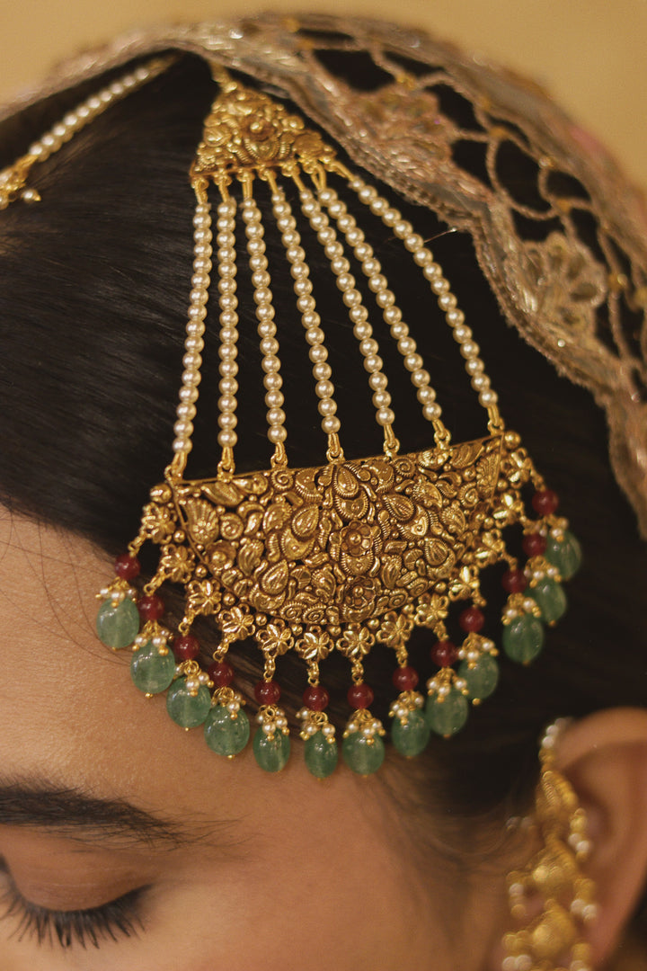 This Set includes Choker, Earrings, Tikka Jhumar