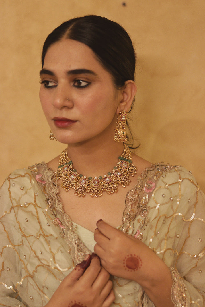 This piece is handcrafted in silver alloy and coated with 24 karat gold. If you wish to get it customized in gold, kindly drop us a message on whatsapp for a quotation.Any precious stones, if used, are lab tested and of...
