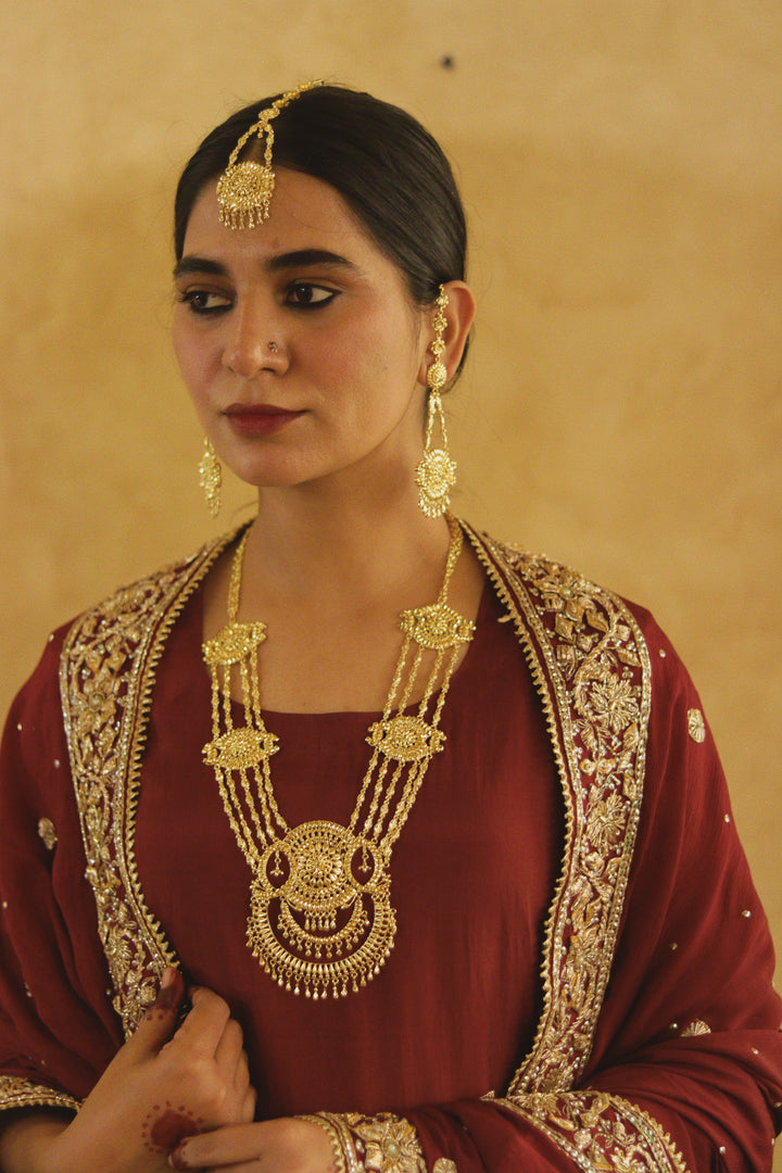 Book Video ConsultationThis piece is handcrafted in 92.5 silver and coated with 24 karat gold. If you wish to get it customized in gold, kindly drop us a message on whatsapp for a quotation.