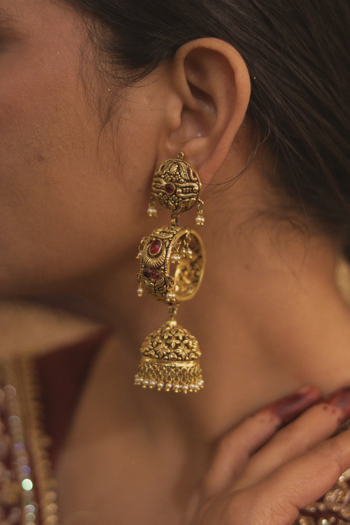 Book Video ConsultationThis piece is handcrafted in 92.5 silver and coated with 24 karat gold. If you wish to get it customized in gold, kindly drop us a message on whatsapp for a quotation.