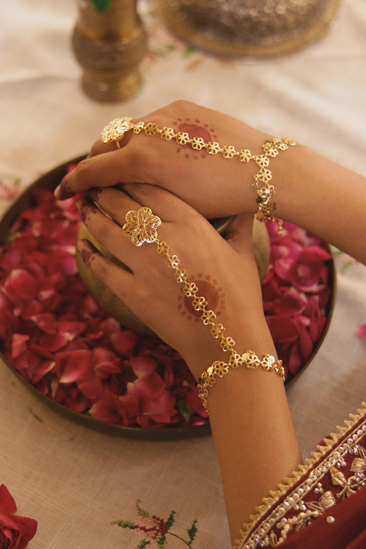 Book Video ConsultationThis piece is handcrafted in 92.5 silver and coated with 24 karat gold. If you wish to get it customized in gold, kindly drop us a message on whatsapp for a quotation.